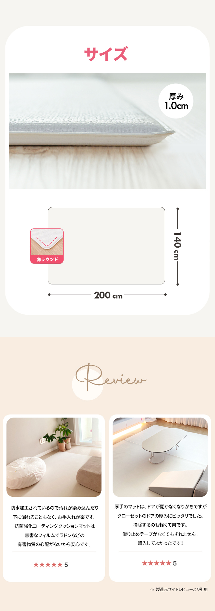 4. [KIDSMIOオリジナル] 強化コーティング クッションマット 140×200cm 厚み1.0cm