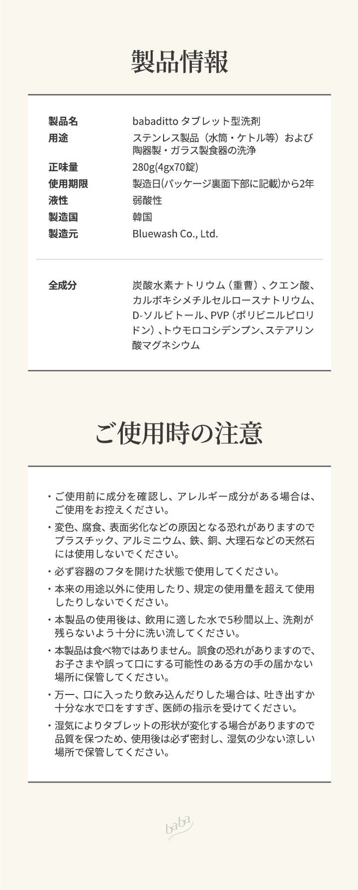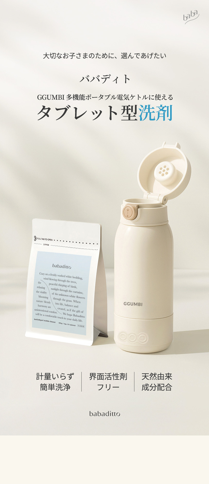 babaditto タブレット型洗剤 70錠入り GGUMBI 多機能ポータブル電気ケトルにも使える