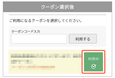 選択されたクーポンには「利用中」のチェックが入ります。